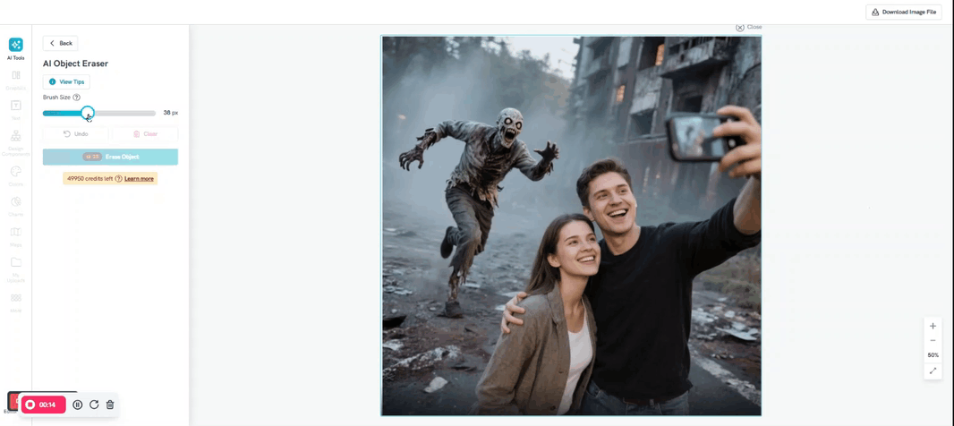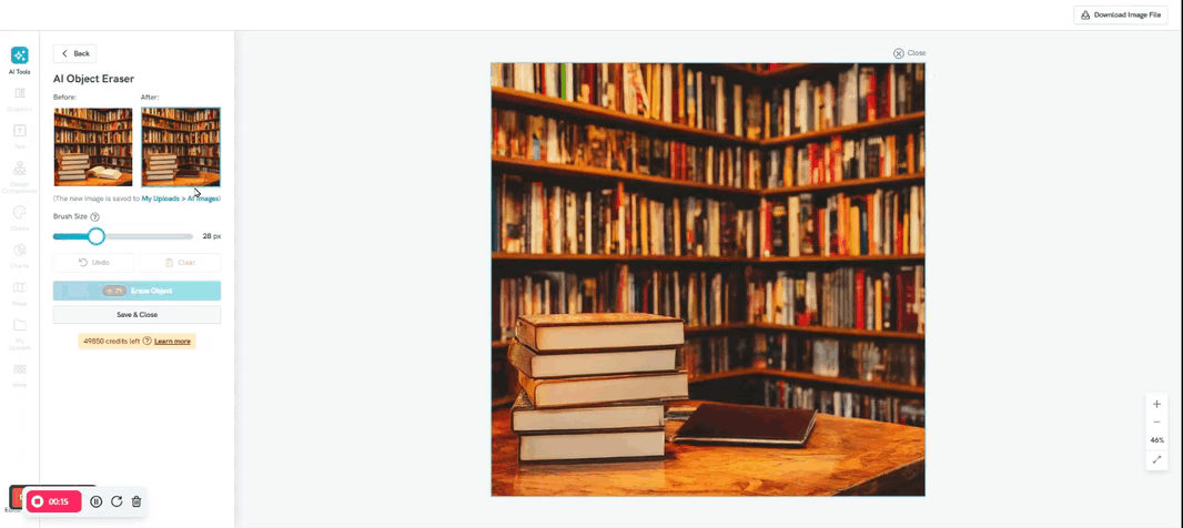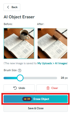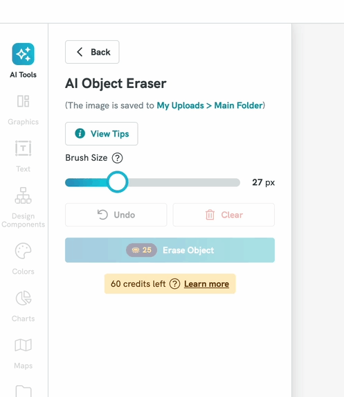 Once the erasure is complete, your enhanced image is automatically saved in My Uploads > AI Images. You can easily access and use it directly in your design projects.