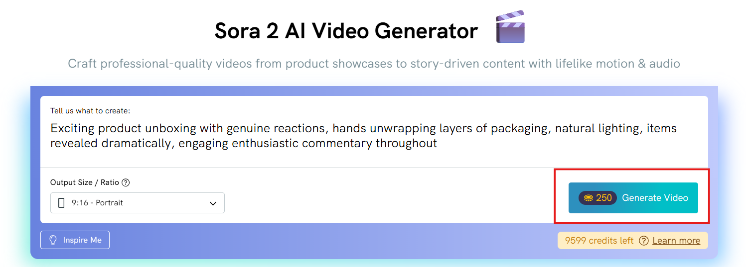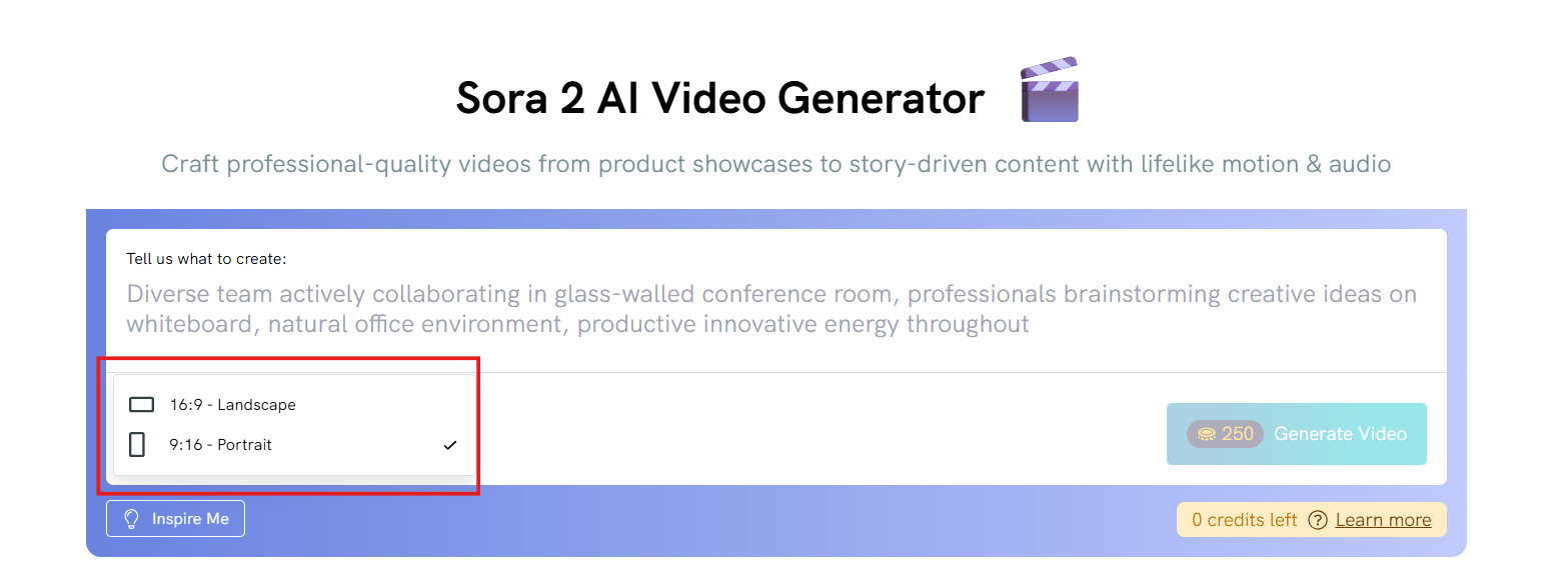 💡 Each generation consumes 250 credits. Learn how to purchase more AI Credits!