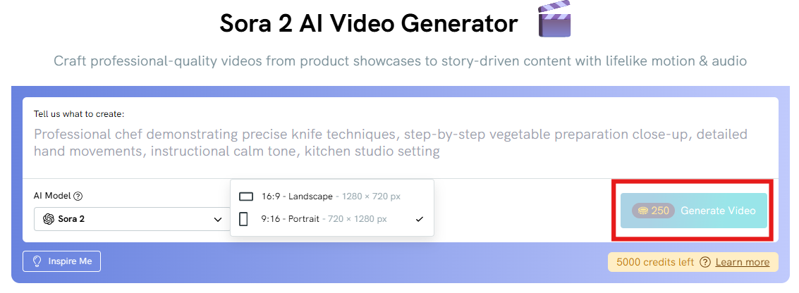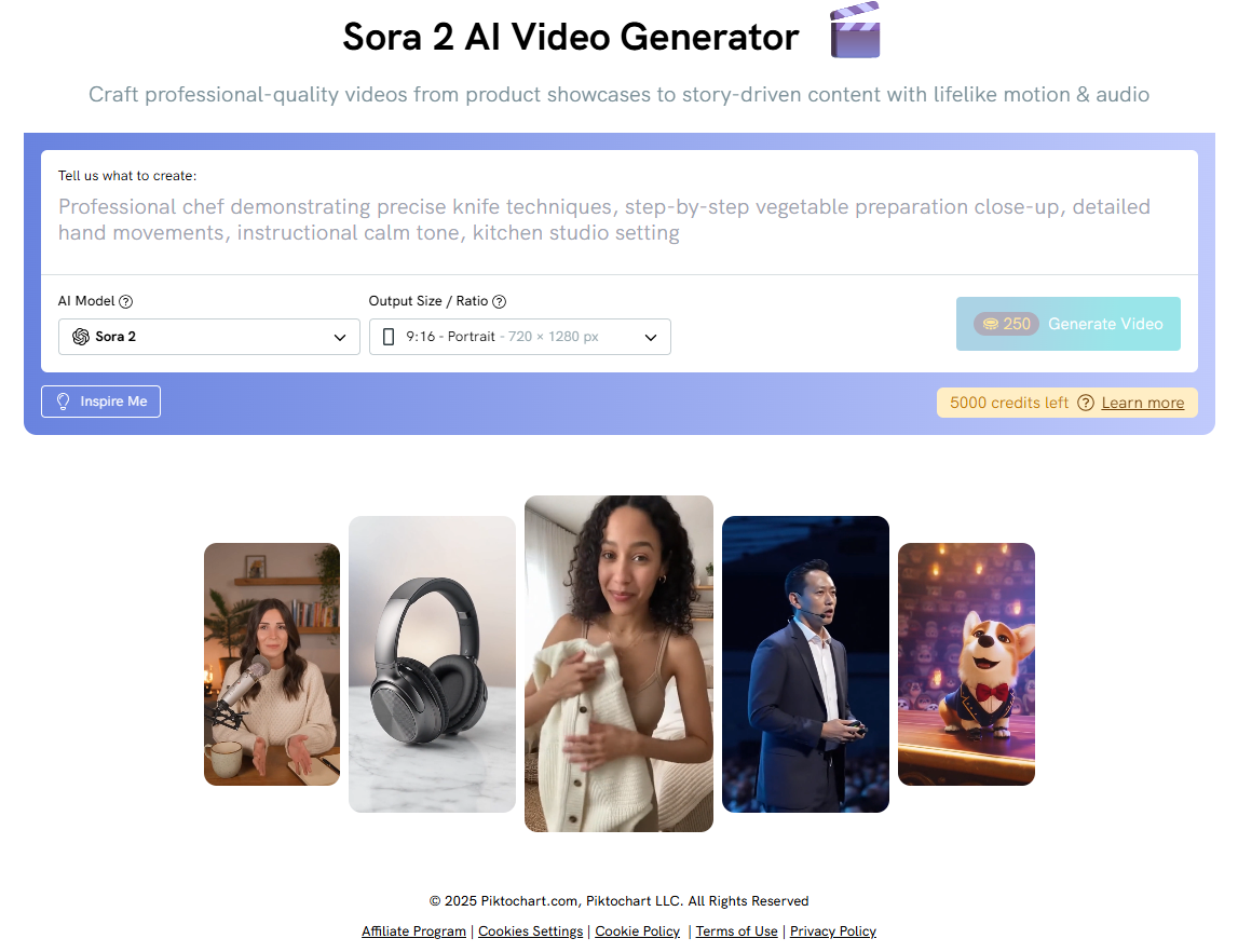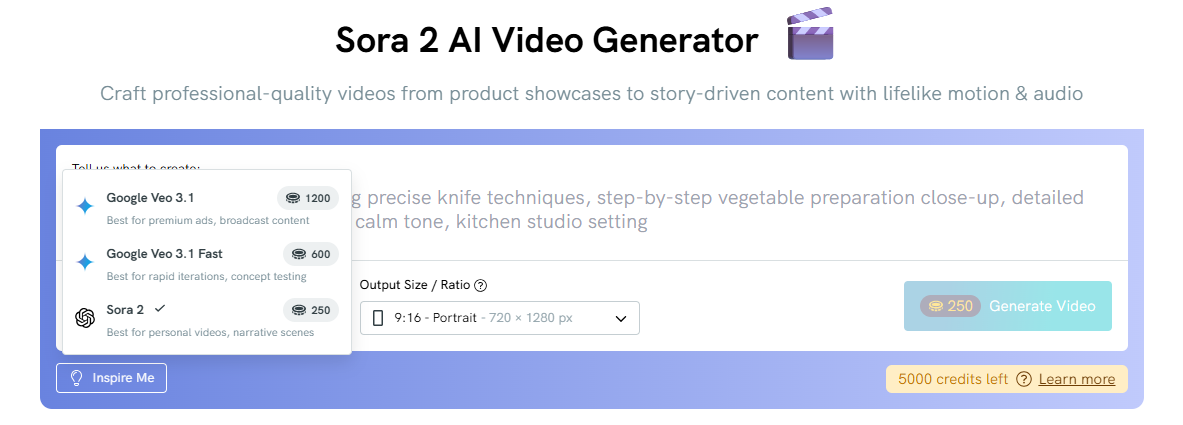 | Sora 2 | Best for personal videos, narrative scenes | 250 |