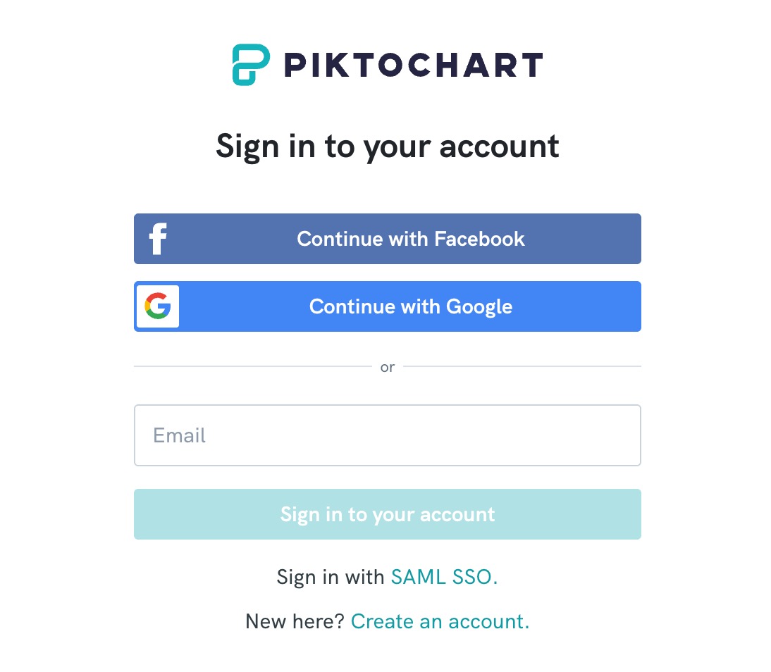 - Sign up for a free 7 days trial account on Piktochart.