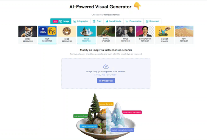 - Once the visual is generated, you can personalize it by adding text, or change the layout.