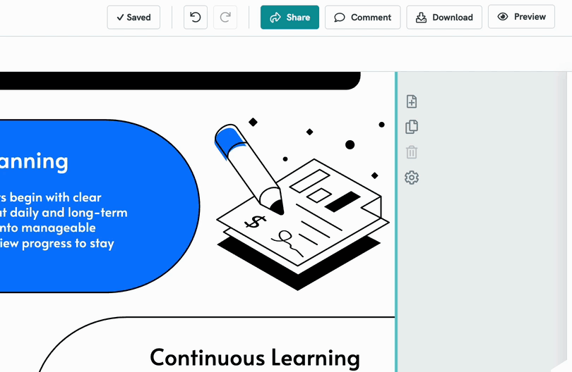 - Turn documents into presentations or infographics.