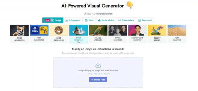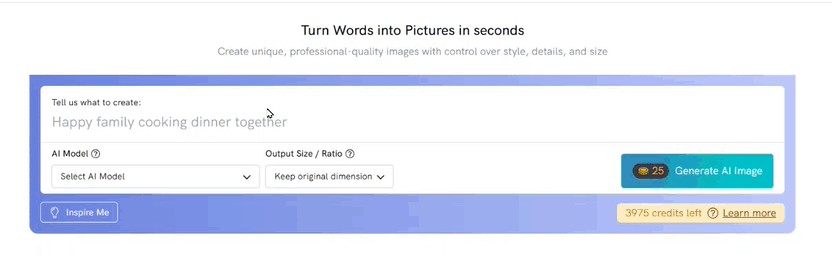 | Image | Use this feature to generate original images based on your description or to edit any photo by enhancing, modifying, or customizing it to fit your needs. |