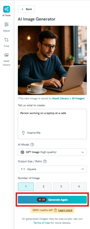 Otherwise, you can generate a new image by clicking Generate Again.