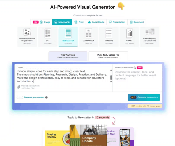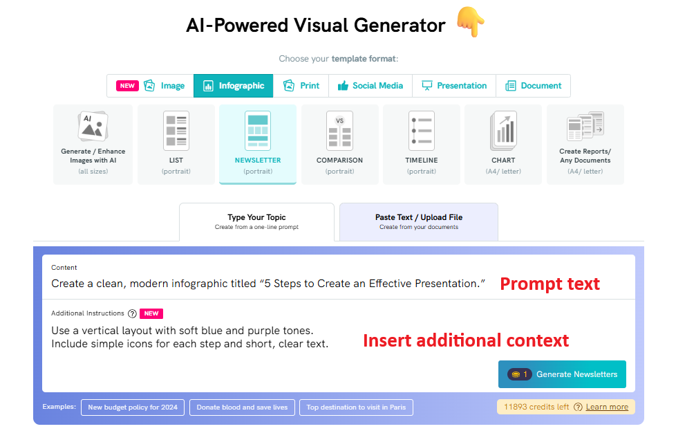 - Enter a Topic/Prompt - Type in a brief description of the visual you want to create (e.g., "Growth of AI").