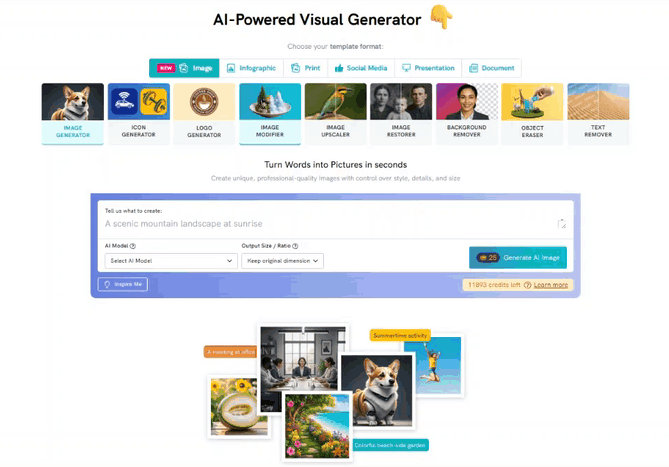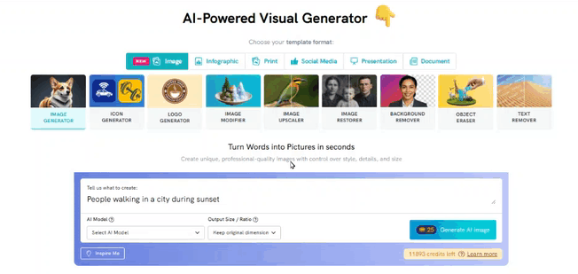 - Click “Generate” and wait a few moments while the AI creates your visual.